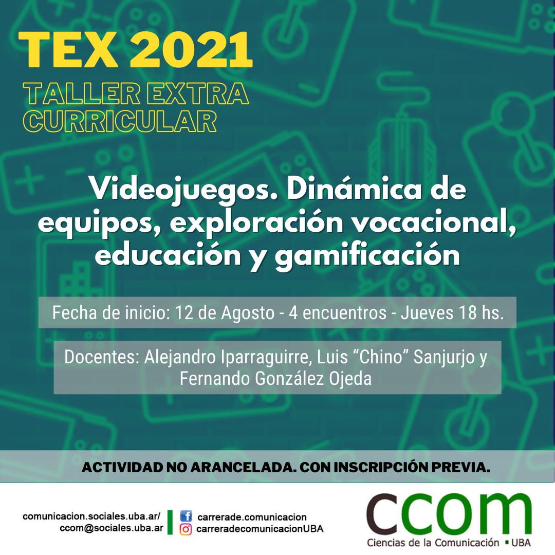A partir del , a cargo de Alejandro Iparragu , Luis Chino Sanjurjo y Fernando González Ojeda. El taller consiste en encuentros autoconclusivos con formato de casos para trabajar en equipos hacia el conocimiento holístico de los videojuegos desde particularidades y condiciones del desarrollo hasta su aplicación y uso en distintos sectores. Está destinadoContinuar leyendo