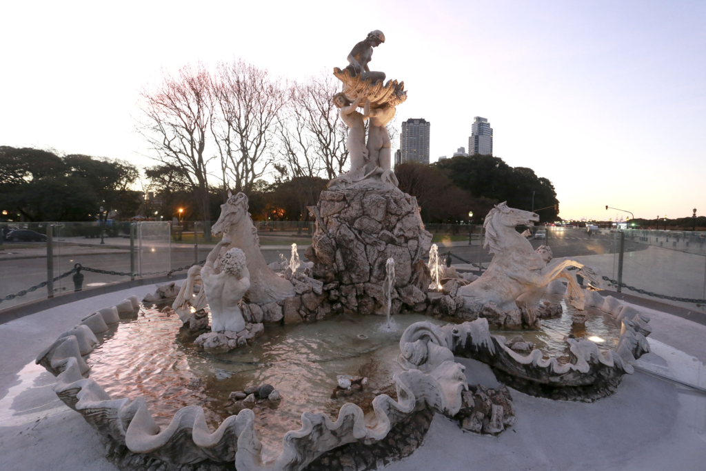 Por otra parte un destino imperdible es Neptuno también en el barrio de Palermo . Neptuno , un Dios en la valva marina era parte de un complejo escultórico que fue encargado a los talleres franceses Du Val D’Osne en 1870. Las dos fuentes de la obra original se ubicaban en la Plaza de Mayo y estaban compuestas por dos Neptunos, uno anciano y otro joven, y dos Náyades. Con el tiempo fueron trasladados y esta obra de arte sobrevivió al paso del tiempo. La dirección es Av. Figueroa Alcorta y Av. Dorrego .